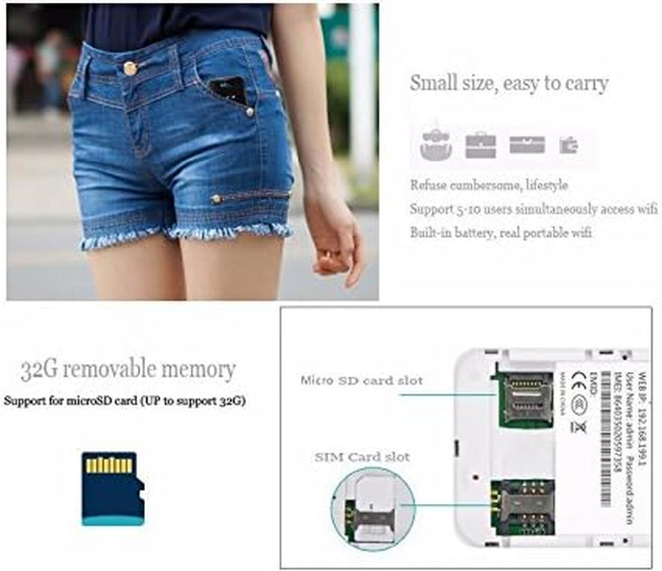 - 【Main features Performance】The LTE WiFi router supports the LTE CAT4 standard, its download speed is up to 150 Mbps, the upload speed is up to 50 Mbps . it is equipped with a screen display, and 1* TF card slot , 1* SIM card slot, 1* Lithium battery 2100mAh (please charger more than 24 hours when first time charger). Working hours are 5-8 hours. If the 4G WiFi Hotspot works for a long time, it needs heat dissipation. Otherwise, it may cause the chip to burn out