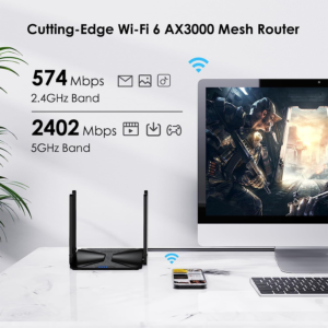 - 【Top-Tier Wi-Fi 6 AX3000 Bandwidth】3 Gbps high speed wireless internet 574Mbps for 2.4GHz + 2402Mbps for 5GHz. Features 160MHz bandwidth, 4X4 MU-MIMO, OFDMA, Beamforming.