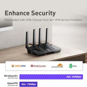 • 【Rapid OpenVPN & Wireguard speed】Wireguard VPN and OpenVPN speeds up to 900Mbps and 190Mbps respectively, giving you complete control over your gaming, steaming and working bandwidth. Actual speed may differ depending on internet service provider, network environment, VPN server location, VPN service provider, etc.