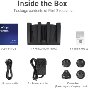 GL.iNet-Mt6000(Flint 2) Wifi 6 Router with Wide Coverage, High-Speed Gaming Router, 2 X 2.5G Multi-Gig Ports+4 X 1G Ethernet Ports, Mass Device Connectivity, Rapid Openvpn & Wireguard, 802.11Ax
